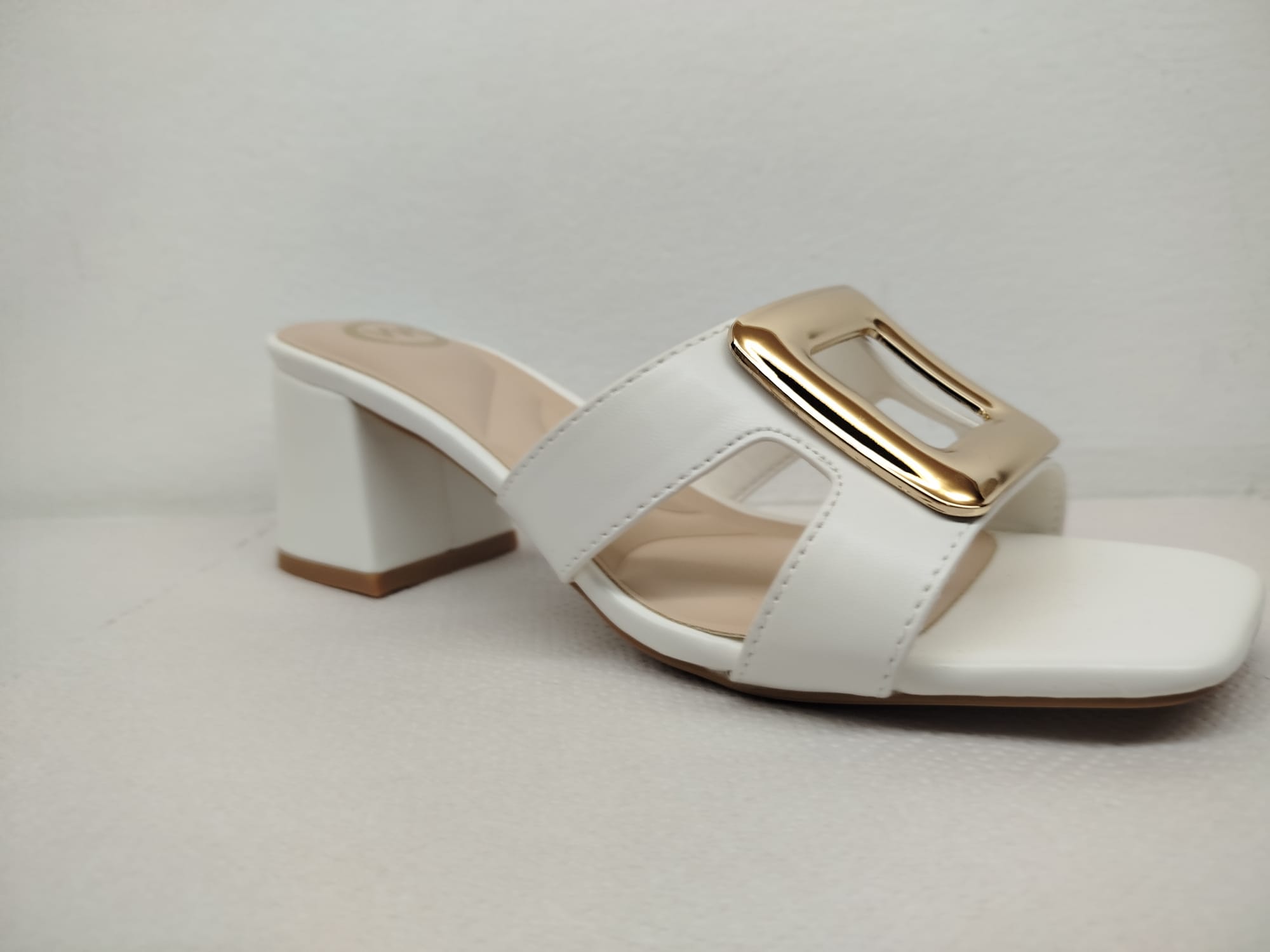 ZUECO SEÑORA, COLOR BLANCO, TACÓN MUY CÓMODO, HEBILLA DORADA